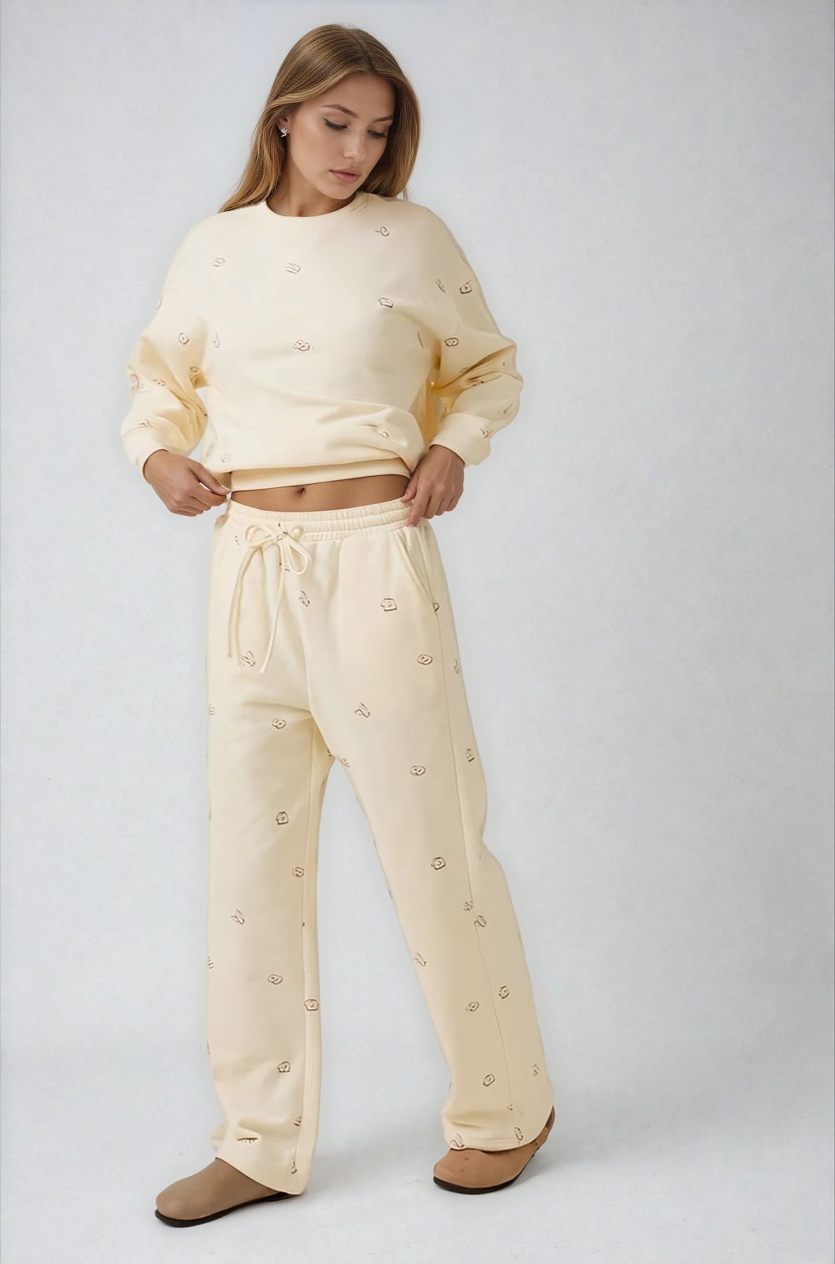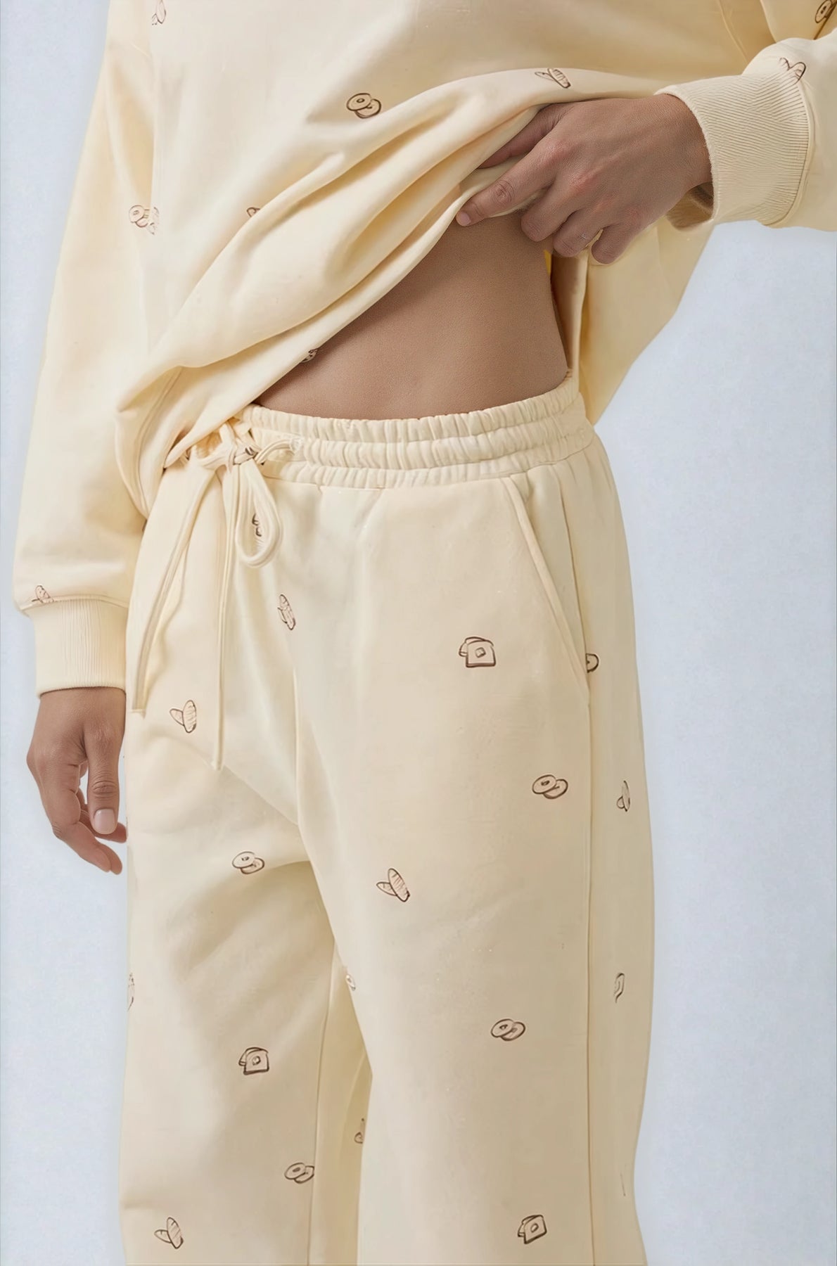 Cozy two-piece lounge set with embroidered bakery-inspired details