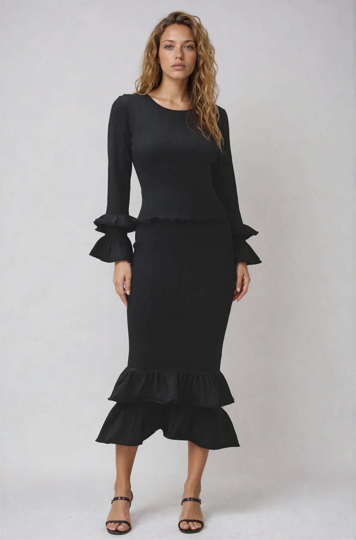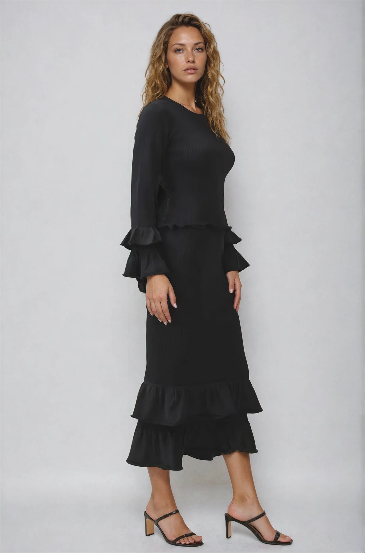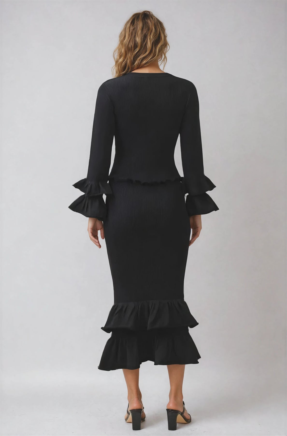 • Coordinating midi skirt with tiered ruffle detailing for movement
