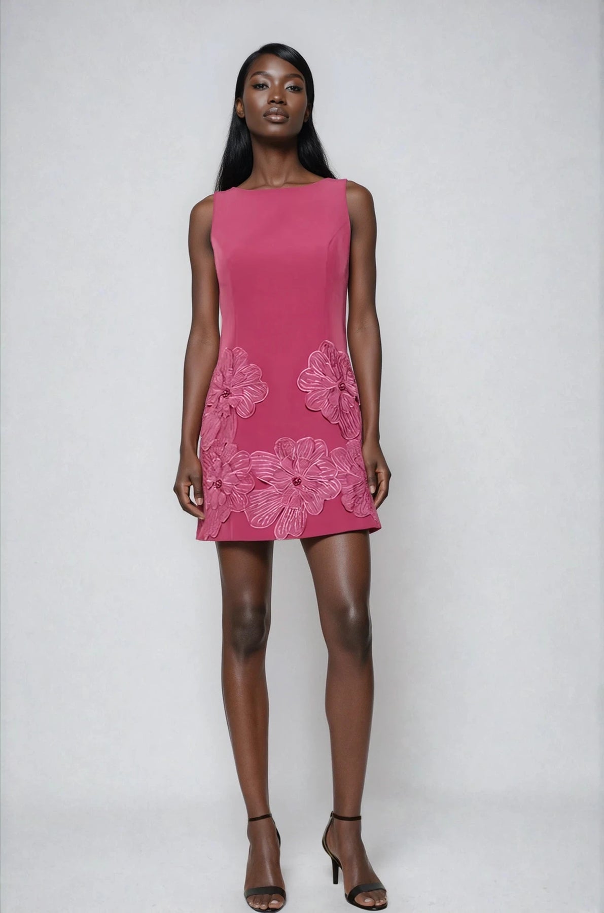 Sleeveless A-line mini dress with a structured, feminine silhouette