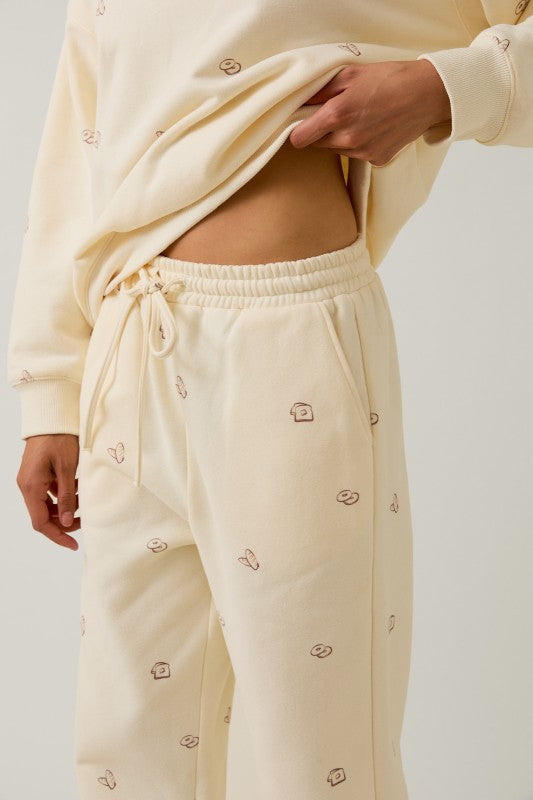 Cozy two-piece lounge set with embroidered bakery-inspired details
