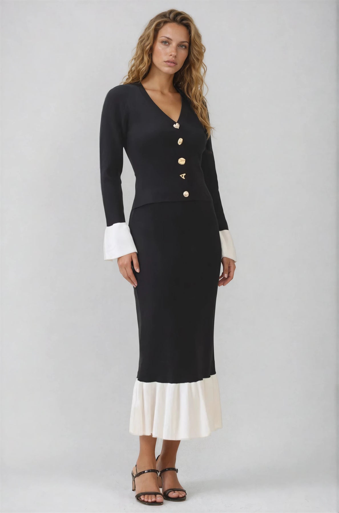 Long sleeve top with contrast cuffs and statement ruffle detailing