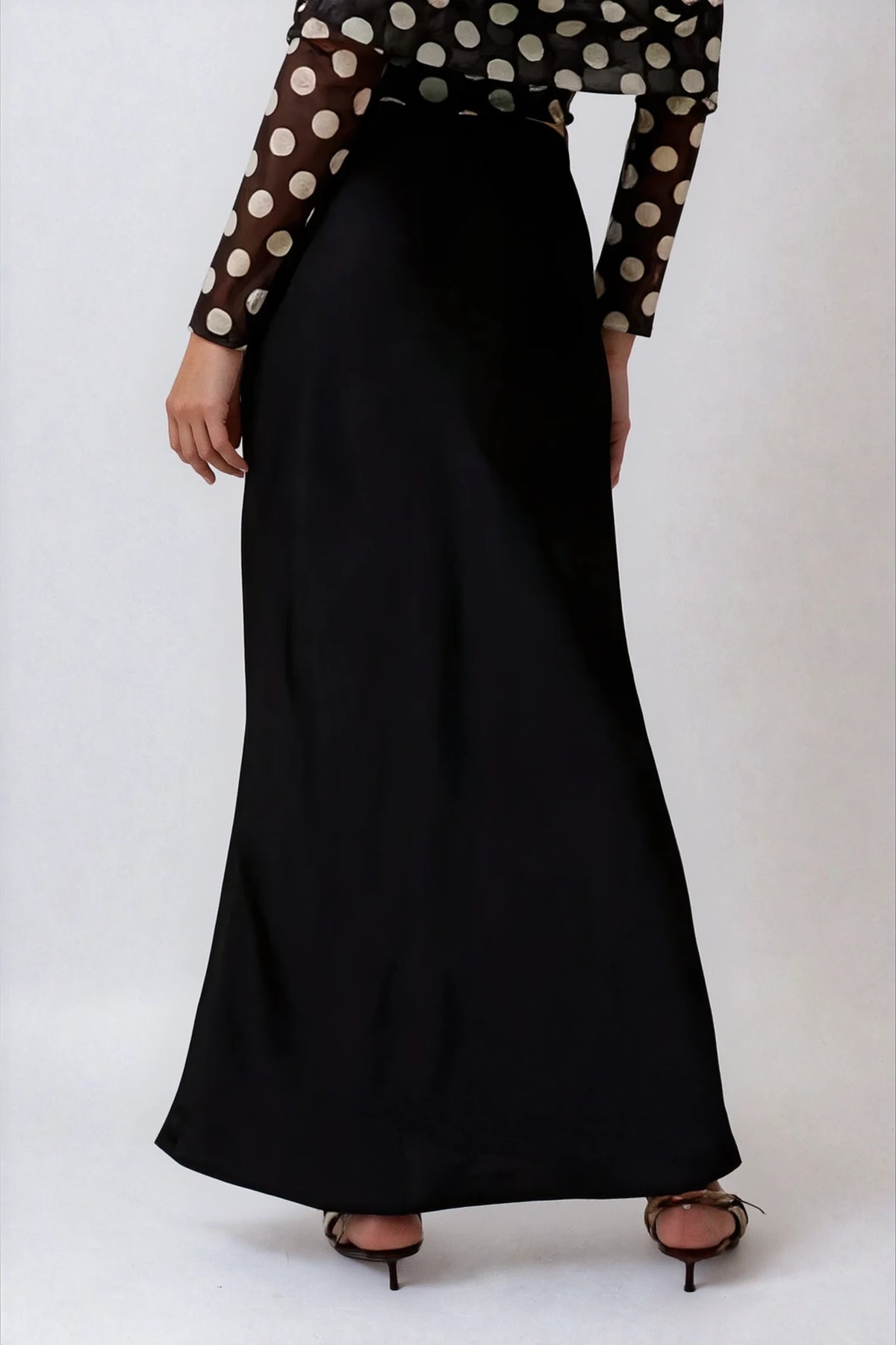 Sleek satin maxi skirt with a minimalist, elongating silhouette