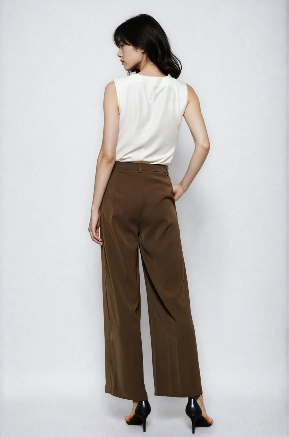Asymmetric sleeveless top with a soft, elegant drape